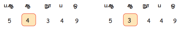 கீழே கொடுக்கப்பட்டுள்ள எண் ஜோடிகளை ஒப்பிட்டு <, >, = சரியான குறியிடுக.