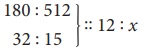ஆகவே , 180 × 32 × x = 512 × 12 × 15 ⇒ x =