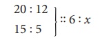 ∴ விகித சமம் 20 : 12 :: 6 : x ஆகும். → (1)