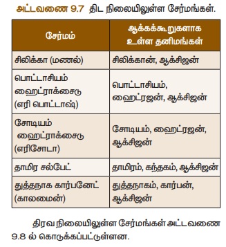திட நிலையிலுள்ள சேர்மங்கள் சில அட்டவணை 9.7 ல் கொடுக்கப்பட்டுள்ளன.
