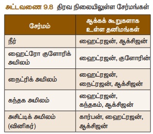 திரவநிலையிலுள்ள சேர்மங்கள் அட்டவணை 9.8 ல் கொடுக்கப்பட்டுள்ளன.