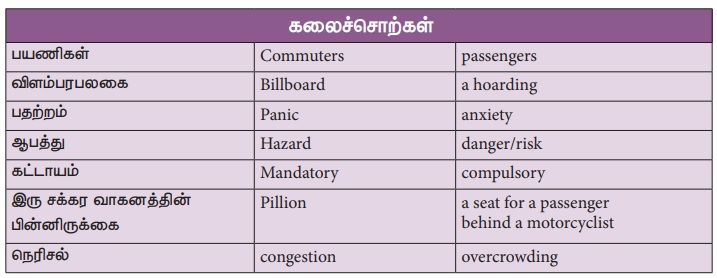 சாலை பாதுகாப்பு விதிகள் மற்றும் நெறிமுறைகள் | அலகு 5 | குடிமையியல் | எட்டாம் வகுப்பு சமூக அறிவியல் - முடிவுரை, மீள்பார்வை, கலைச்சொற்கள் | 8th Social Science : Civics : Chapter 5 : Road Safety Rules and Regulations