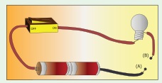 4: பட்டியலில் உள்ள பொருள்களை, A, B என்ற இருமுனைகளுக்கு இடையே இணைத்து, மின்விளக்கு