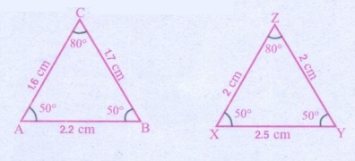 பின்வரும் இரு முக்கோணங்களான ∆ABC மற்றும் ∆XYZ ஐ உற்று நோக்குக.