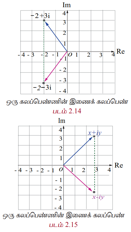 வரையறை, தேற்றம், நிரூபணம், எடுத்துக்காட்டு கணக்குகள் - ஒரு கலப்பெண்ணின் இணைக் கலப்பெண் (Conjugate of a Complex Number) | 12th Maths : UNIT 2 : Complex Numbers