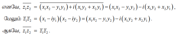 ஆகவே, z1z2 = (x1 + iy1) (x2 + iy2) = (x1x2 – y1y2) + i(x1y2 + x2y1).