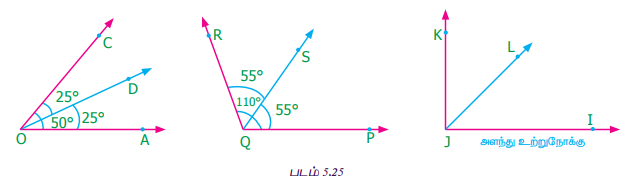 வடிவியல் | முதல் பருவம் அலகு 5 | 7ஆம் வகுப்பு கணக்கு - ஒரு கோணத்தின் கோண இருசமவெட்டி வரைதல் | 7th Maths : Term 1 Unit 5 : Geometry