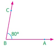 படி 1: பாகைமானியைப் பயன்படுத்தி 80° அளவுள்ளவாறு கோணம் ∠ABC யை அமைக்க.