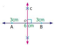 6 செமீ நீளமுள்ள AB என்ற கோட்டுத்துண்டிற்கு செங்குத்து இரு சமவெட்டியை வரைக.