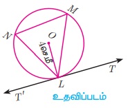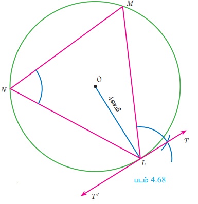 படி 4: ∠TLM = ∠MNL என அமையுமாறு L வழியே TT' என்ற தொடுகோடு வரைக.