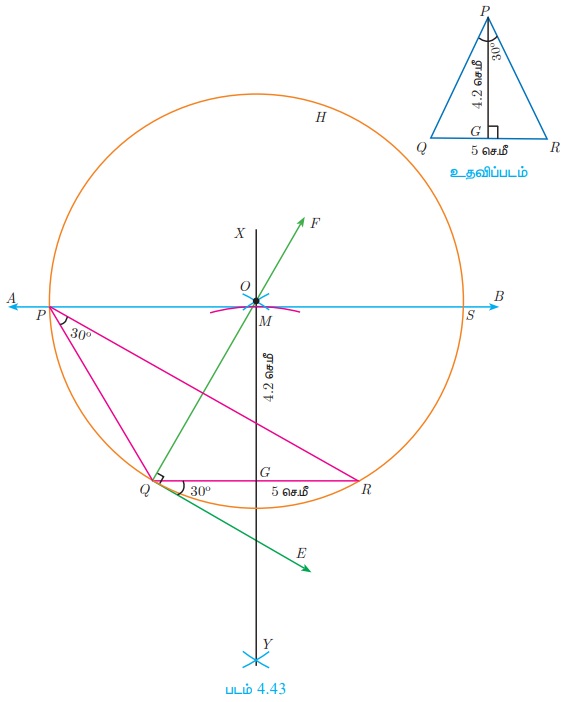 QR = 5 செ.மீ, ∠P = 30° மற்றும் P-யிலிருந்து QR-க்கு வரையப்பட்ட குத்துக்கோட்டின் நீளம் 4.2 செ.மீ கொண்ட ΔPQR வரைக.