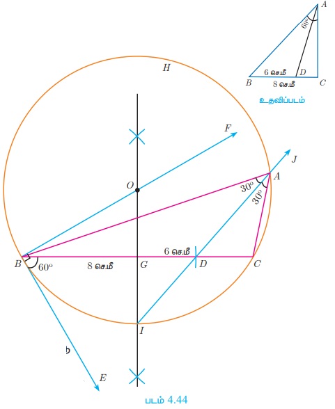 படி 7: மையக்குத்துக்கோடானது வட்டத்தை I என்ற புள்ளியில் சந்திக்கிறது. ID-யை இணைக்கவும்.