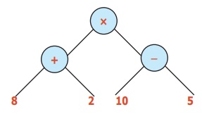 விலை 10 மற்றும் 5ஐ பெருக்கினால் நமக்கு 50 கிடைக்கும். கணுவில் உள்ள கூட்டலை அல்லது கழித்தலை மாற்றி அமைத்தால் விடை மாறாது என்பதால் கீழே கொடுக்கப்பட்டதுபோல் மரவுரு வரைபடத்தை மாற்றி அமைக்கலாம்.