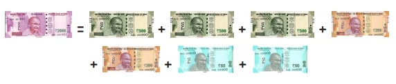 சங்கர் சுற்றுலா செல்ல தயாராகிக் கொண்டு இருக்கிறான். அவன் தன்னுடைய தந்தையிடம் ₹ 400 ஐ கைச் செலவிற்காக கேட்டான். தன்னுடைய பர்ஸில் ரூபாய் 2000 நோட்டுகள் மட்டுமே இருந்ததைக் கண்டார். உடனே கடைக்குச் சென்று ₹ 2000 இக்கு சில்லறையைப் பெறுகிறார்.