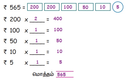 பணம் | பருவம் 3 அலகு 5 | 4 ஆம் வகுப்பு கணக்கு - ரூபாயை பணமாக மாற்றுதல் | 4th Maths : Term 3 Unit 5 : Money