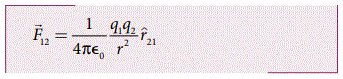 q2வின் மீது புள்ளி மின்துகள் q1 செயல்படுத்தும் விசையானது பின்வருமாறு
