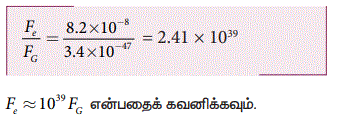 மதிப்பு k = 9X 109 N m2 C-2 kன் மதிப்பு G ஐ விட