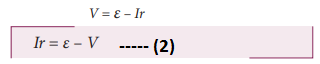 • அகமின்தடை r ன் காரணமாக, வோல்ட் மீட்டர் காட்டும் Vன் மதிப்பு மின்னியக்கு விசை ξ ஐ விட குறைவாக இருக்கும்.