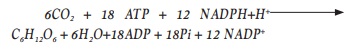 C6H12O6 + 6H2O + 18ADP + 18Pi + 12 NADP+