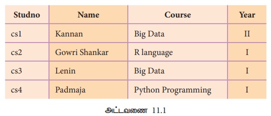 தரவுதள கருத்துருக்கள் மற்றும் MySql - தரவுதள கருத்துருக்கள்: பின்வரும் கேள்விகளுக்கு பதில் அளிக்கவும் | 12th Computer Science : Chapter 11 : Database concepts and MySql : Database Concepts