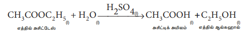 (2) அமில அல்லது கார வினைவேகமாற்றி முன்னிலையில் எஸ்டரை நீராற்பகுத்தல்.