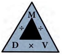 அடர்த்தி (D) = நிறை (M) / பருமன் (V)