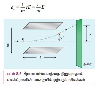 படம் 8.5 சீரான மின்புலத்தை நிறுவுவதால் எலக்ட்ரானின்