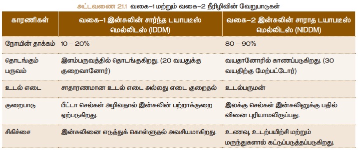 கணையக் குறைபாடாகும். வகை - 1 மற்றும் வகை-2 நீரிழிவு