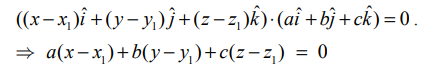 என்பது தளத்தில் உள்ள ஏதேனுமொரு புள்ளி (x,y,z) நிலை வெக்டர் என்க. கொடுக்கப்பட்ட சமன்பாட்டை
