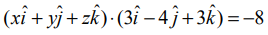 ஒரு தளத்தின் கார்டீசியன் சமன்பாடு 3x−4y+3z=−8 எனில், தளத்தின் வெக்டர் சமன்பாட்டை திட்ட வடிவில் காண்க.