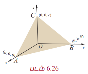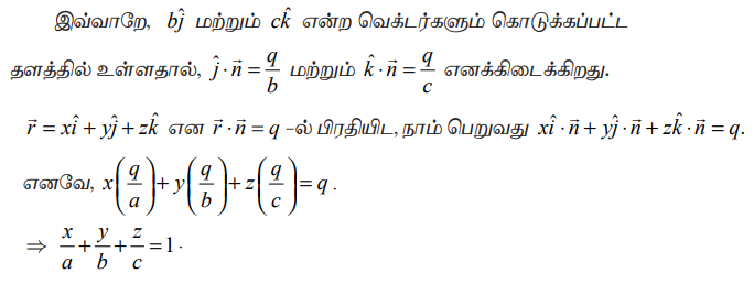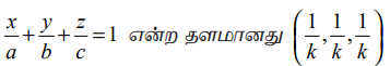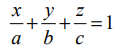 x,y,z அச்சுக்களில் முறையே a,b,c என்ற வெட்டுத் துண்டுகளை ஏற்படுத்தும் தளத்தின் சமன்பாடு