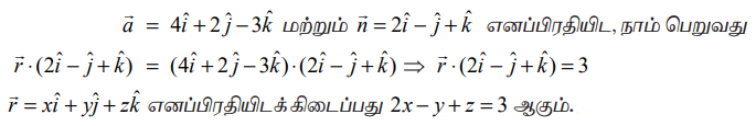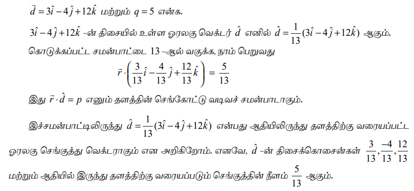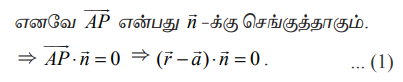 (a) செங்கோட்டு வடிவ வெக்டர் சமன்பாடு (Vector equation of a plane in normal form)