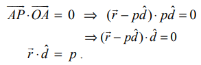 ஆதிப்புள்ளியிலிருந்து p தொலைவில் உள்ள தளத்தினை கருதுக. ஆதிப்புள்ளி O−விலிருந்து தளத்திற்கு வரையப்படும் செங்கோட்டின் அடி A என்க.