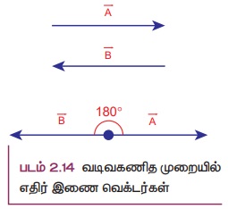 என்ற இரண்டு வெக்டர்கள், எதிரெதிர் திசையில் ஒரே கோட்டில் அல்லது இணைகோடுகள் வழியாக செயல்பட்டால் அவற்றை எதிர் - இணை வெக்டர்கள் என்று அழைக்கலாம். (படம் 2.14)