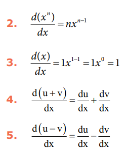 1. d(c) / dx = 0 இங்கு C ஒரு மாறிலி
