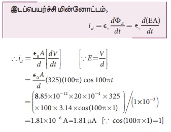 = 1 S -ல் இடப்பெயர்ச்சி மின்னோட்டத்தின் மதிப்பைக் கணக்கிடுக.