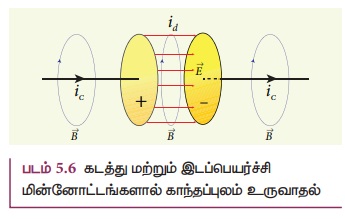 இடப்பெயர்ச்சி மின்னோட்டம் (displacement current) என்ற ழைக்கப்படும் (படம் 5.5)