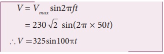 230 VRMS மதிப்பும் 50 Hz அதிர்வெண்ணும் கொண்ட மாறுதிசை மின்னழுத்த