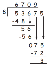 2. ஈவுமத்தும் மீதியைக் கண்டுபிடி 53675 ÷ 8