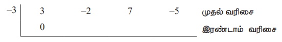 படி 3: வகுபடும் கோவையின் பூச்சியத்தை முதல் வரிசைக்கு முன்னால் எழுதுக. இரண்டாம் வரிசையில் பூச்சியத்தை முதல் உறுப்புக்குக் கீழே எழுதுக.