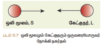 ஒலி மூலம் S மற்றும் கேட்குநர் L முறையே vs மற்றும் vL மற்றும் திசைவேகத்தில் நகர்வதாகக் கருதுவோம். ஒலி மூலமும், கேட்குநரும் ஒன்றையொன்று நோக்கி நகர்வதாக எடுத்துக் கொள்வோம் (படம் 5.7).