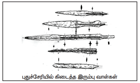 வாள், ஈட்டி, கத்தி போன்ற படைக்கருவிகளும் தயாரிக்கப்பட்டன.