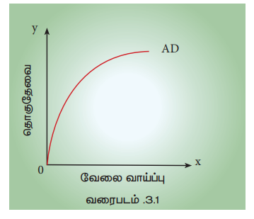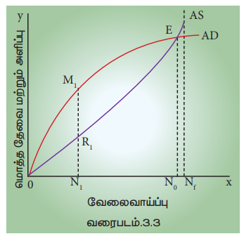 கீழ்கண்ட வரைபடம் 3.1. தொகுத் தேவைக்கும், வேலைவாய்ப்புக்கும் உள்ள தொடர்பை காட்டுகிறது.