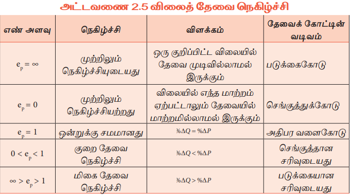 விலைத் தேவை நெகிழ்ச்சி (EP) = தேவை அளவில் ஏற்பட்ட மாற்ற விகிதம் /விலையில் ஏற்பட்ட மாற்ற விகிதம்