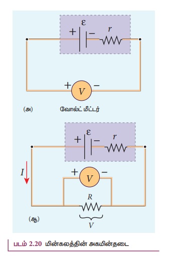 (படம் 2.20(அ)) வோல்ட்மீட்டர்மிகக்குறைந்த அளவே மின்னோட்டத்தை எடுத்துக்கொள்வதால் இச்சுற்று
