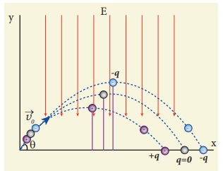 கடத்தியின் நிகர மின்னூட்டம் சுழியெனில் அதன் இயக்கம், நாம் இயக்கவியல் (+1 இயற்பியல், தொகுதி – I, அலகு -2) அறிந்த m நிறை கொண்ட ஒரு எறிபொருளின் இயக்கத்தை ஒத்ததே. ஆனால் இந்தக் கணக்கில் கீழ்நோக்கிய திசையில் செயல்படும் ஈர்ப்பு விசையுடன் சேர்ந்து சீரான நிலைமின் விசையையும் அப்பந்து உணர்கிறது.
