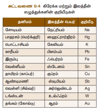 4. சில தனிமங்களின் குறியீடுகள் அவற்றின் அடிப்படையில் எழுதப்படுகின்றன.