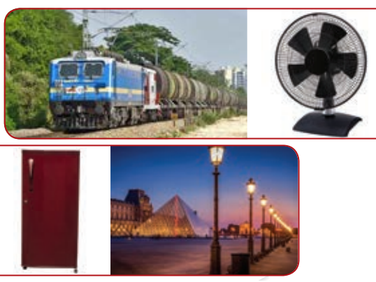● காற்றாடி, விளக்கு, தொலைக்காட்சி, சலவை இயந்திரம் மற்றும் குளிர்சாதனப்பெட்டி போன்றவை செயல்பட மின்னாற்றல் தேவைப்படுகிறது.