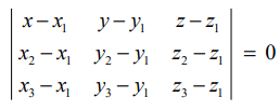 இதுவே ஒரே கோட்டிலமையாத மூன்று புள்ளிகள் வழிச் செல்லும் தளத்தின் கார்டீசியன் சமன்பாடாகும்.