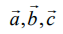 என்ற நிலைவெக்டர்களைக் கொண்ட ஒரே கோட்டிலமையாத மூன்று புள்ளிகள் A,B,C என்பவற்றின் அச்சுத்தூரங்கள் முறையே (x1, y1, z1), (x2, y2, z2), (x3, y3, z3) மற்றும்